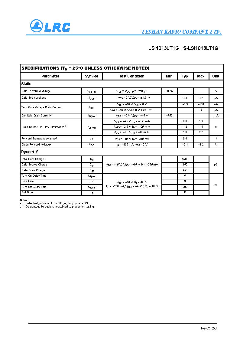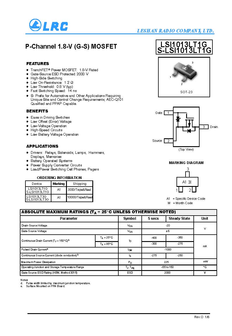 LSI1013LT1G SOT-23 P-Channel(with ESD) LRC MOS管