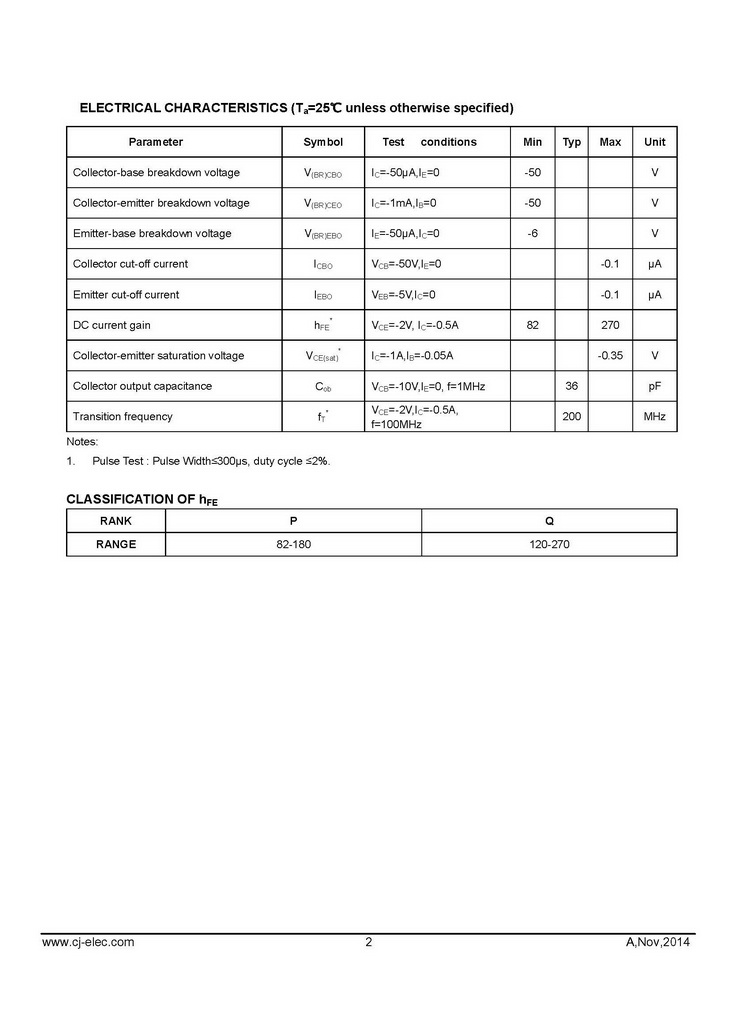 2SA1012B PNP 1250mW IC=2000mA BVCBO=50V TO-252-2L(4R)長電 開關(guān)放大晶體管