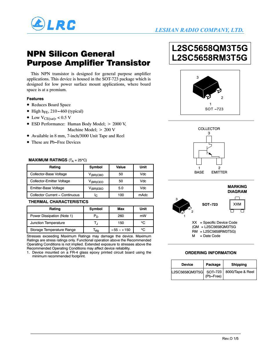 > L2SC5658RM3T5G SOT-723 NPN LRC三級管